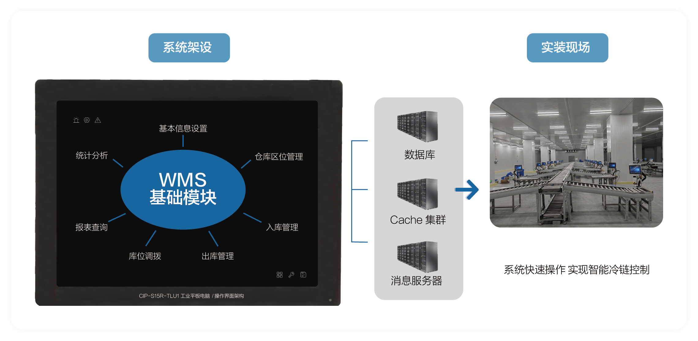 基于用户需求,九州ku游官网提供基于CIP-S15R-TLU1工业平板电脑为核心计算单元的智慧冷链仓储物流系统解决方案,该方案具备以下优势: